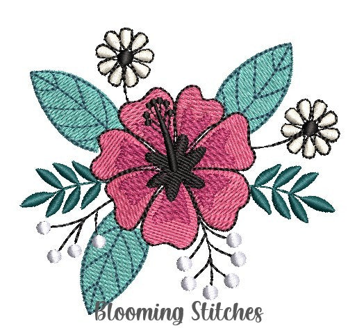 Hibiscus Floral embroidery design. 5 Sizes Included.